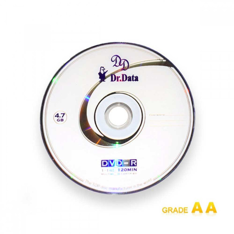 دی وی دی دکتر دیتا باکس دار 50 عددی با کیفیت و گرید AA در تولیدات CD خام و DVD خام کیفیت بالایی از تولید بوده که دیسک دی وی دی Dr.Data با ظرفیت رایت DVD از انواع اطلاعات تا حجم 4.7 گیگ از بهترین برند های تولید DVD خام محسوب می شود که امکان رایت اطلاعاتی همچون فیلم های آموزشی ، انواع نرم افزار ، ویدیو ، عکس و آهنگ را بافرمت های مختلف با تام زمانی 120 دقیقه د مورد ویدیو با کیفیت استاندارد را دارد .حداقل تعداد خرید به قیمت درج شده 1800 حلقه میباشد برای خرید در تعداد کمتر تماس بگیرید