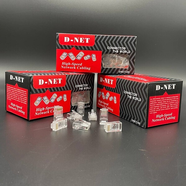 سوکت شبکه RJ-45 dnet یک کانکتور (نَری یا سوکت) شفاف کوچک با رنگهای متنوع پلاستیکی و گاهی روکش فلزی که به ان سوکت شیلدار هم