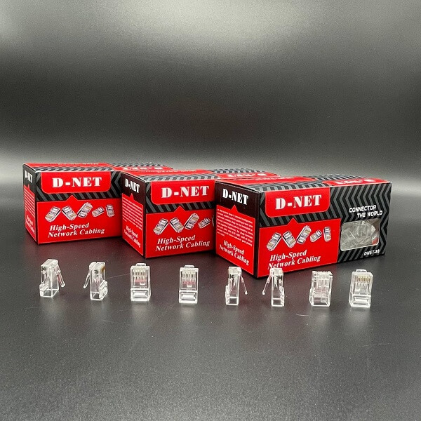 سوکت شبکه RJ-45 dnet یک کانکتور (نَری یا سوکت) شفاف کوچک با رنگهای متنوع پلاستیکی و گاهی روکش فلزی که به ان سوکت شیلدار هم