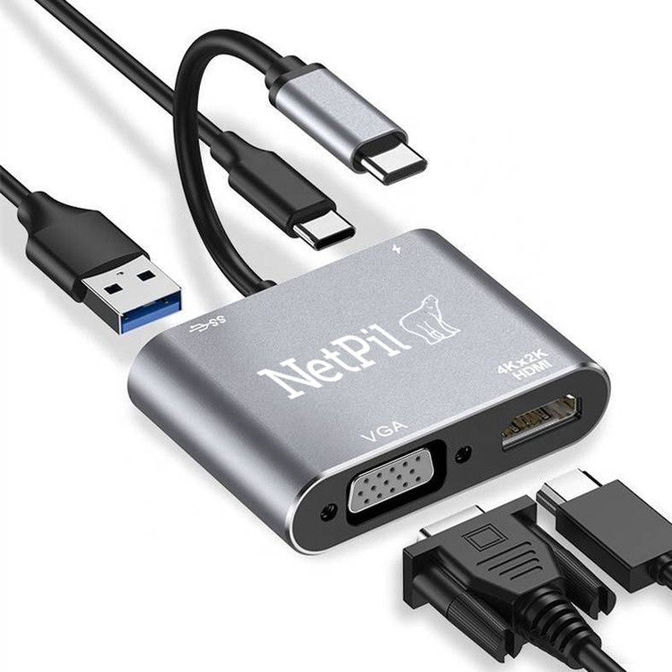 با استفاده از هاب 4 پورت USB-C نت پیل مدل 8021 پورت usb c خود را به یک HDMI، یک خروجی VGA، یک USB 3.0 و یک پورت شارژ USB-C گسترش دهید. این هاب به شما امکان می دهد گوشی خود را به یک صفحه نمایش بزرگ وصل کنید و تصاویر 4K UHD یا 1080p را به HDTV، مانیتورها، پروژکتورها انتقال دهید. همچنین احتیاجی به منبع تغذیه خارجی نیست و امکانات متعددی برای مراقبت برای ولتاژ بیش از حد، شارژ بیش از حد، گرمای بیش از حد اعمال شده است . صفحه آلومینیومی برای ظرفیت آنتی اکسیدانی قوی طراحی شده و بنابراین می توانید با خیال راحت و آسان از آن در مکان مورد علاقه خود استفاده کنید. هاب 4 پورت USB-C نت پیل مدل 8021 از 4K UHD 3840×2160@30Hz پشتیبانی می کند. صفحه نمایش VGA تا 1080P@60Hz Full HDاست . هنگامی که دو پورت به طور همزمان کار می کنند ، حداکثر وضوح هر دو 1920 x 1080P@60Hz میباشد. توجه کنید در حالت Extend، در حالی که vga و hdmi همزمان کار می کنند، دو مانیتور فقط محتوای یکسانی را نشان می دهند. پورت USB 3.0 سرعت انتقال داده با سرعت بالا تا 5 گیگابیت بر ثانیه را فراهم می کند و به راحتی می توان فیلم های HD را در مدت زمان کوتاهی انتقال داد. به شما امکان می دهد دستگاه های USB خارجی بیشتری مانند صفحه کلید، ماوس، Thumb Drive را متصل کرده و همچنین از سایر دستگاه های USB A 2.0/3.0 و شارژ PD 87 وات و شارژ عبوری برای لپ تاپ USB C، تلفن هوشمند و سایر دستگاه های USB c پشتیبانی می کند.