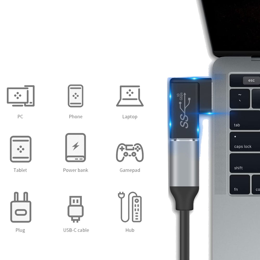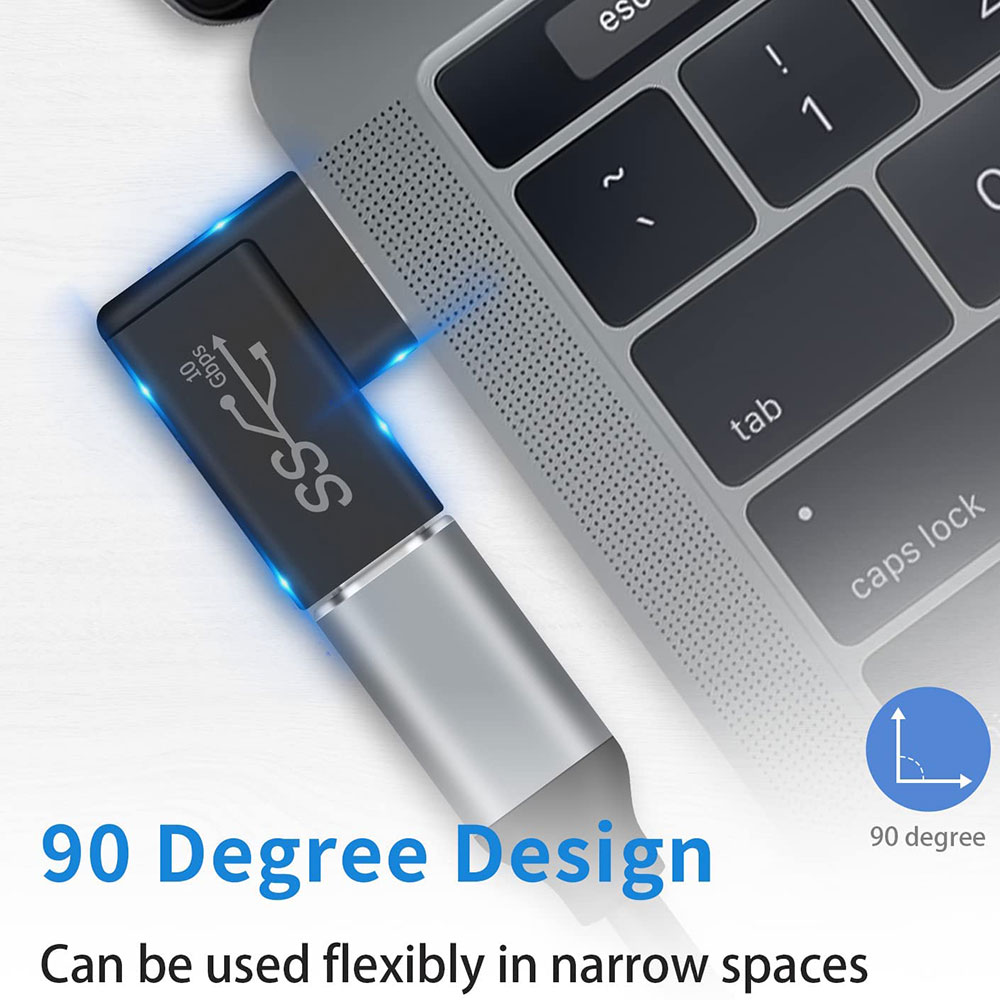 مبدل یو اس بی نری به تایپ سی مادگی 90 درجه مدل 8105 میتواند تا حد اکثر سرعت 10 گیگابیت بر ثانیه دیتا راانتقال دهد همچنین شارژ با جریان 3 آمپر را پشتیبانی میکند.