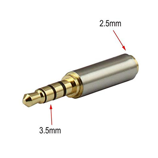مبدل جک صدا 2.5 به 3.5 میلی متری مدل BAMA22 تبدیل فلزی طلایی رنگ مادگی 2.5 میلیمتری صدا به نرینگی 3.5 میلیمتری صدا میباشد. با نام تجاری جدید اتصالات: 3.5 میلی متر نر تا 2.5 میلی متر ماده مناسب برای هدست با پلاگین 2.5 میلی متر به شما امکان می دهد دستگاهی را که سوکت 3.5 میلی متری است وصل کنید هدفون 3.5 میلی متری خود را به سوکت صوتی 2.5 میلی متری به MP3 ، تلفن همراه یا سایر دستگاه ها وصل کنید.بدنه اصلی پوسته از آلیاژ آلومینیوم ساخته شده است . هر دو قسمت انتهایی از صنایع دستی آبکاری طلا استفاده می شوند. با کیفیت بالا جک نر 3.5 / 2.5 میلی متر تا زن 2.5 / 3.5 میلی متر
