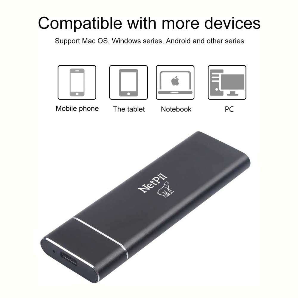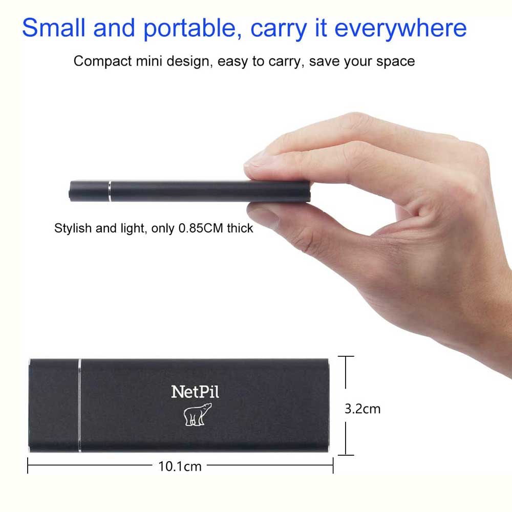 باکس تبدیل NGFF SSD M.2 به USB3.0 نت پیل مدل V127 ساخته شده از پوسته آلیاژ آلومینیوم با طراحی باریک، بدون فن خنک کننده برای درایوهای حالت جامد M.2 NGFF با سرعت بالا طراحی شده است . محفظه SSD M.2 از درایوهای حالت جامد NGFF M.2 تا 2 ترابایت مانند WD Blue /Crucial MX500 /Samsung 860 EVO/Kingston A400/ Samsung 860 EVO/ Kingston A400/ B&M Key ، B Key 2280/2260/2242/2230 NGFF M.2 پشتیبانی می کند. محفظه هارد دیسک SATA M.2 از انتقال داده با سرعت بالا پشتیبانی می کندو فیلم های با حجم زیاد را در چند ثانیه منتقل کند . NVME، PCI-E را پشتیبانی نمی کند . محفظه خارجی M.2 SATA SSD همراه با کابل USB C به USB 3.0 است که به راحتی NGFF M.2 SSD را به یک رایانه USB برای پشتیبان گیری سریع فایل، ارتقاء دیسک، شبیه سازی دیسک، بازیابی اطلاعات و گسترش فضای ذخیره سازی متصل می کند. سازگار برای Windows XP / 7 / 8 / 10 و Mac OS. Hot-plug، Plug and play، بدون نیاز به درایور.