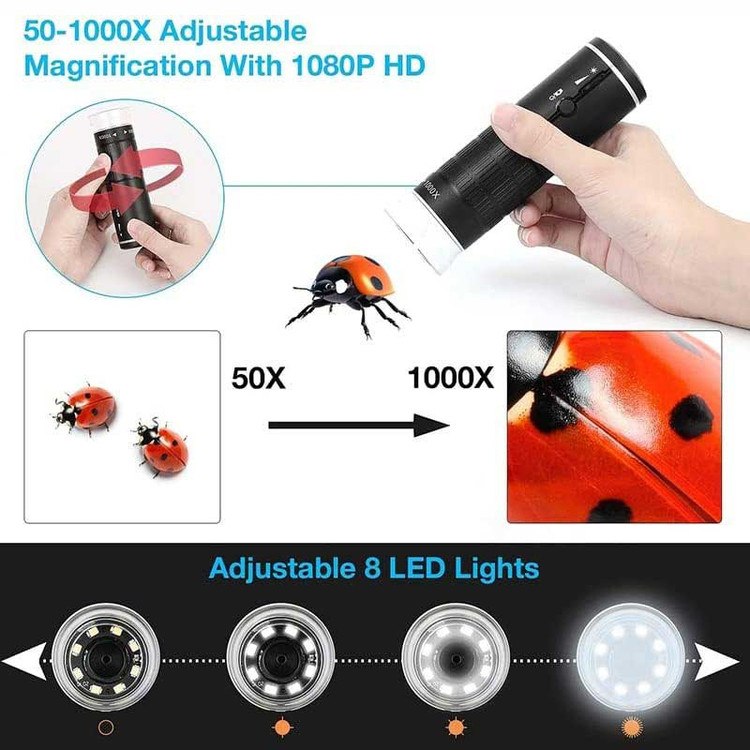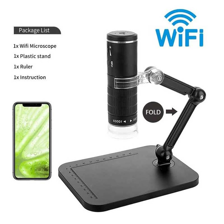 میکروسکوپ دیجیتال مدل NETPIL F210F با لنز دوربین 2 مگا پیکسلی و هشت ال ای دی و سنسور پیشرفته تصویر و ویدیو شفافی را ارایه میدهد.روشنایی نور ال ای دی قابل تنظیم است.رزولیشن بالای 1080P و 1920P به شما کمک میکند تا براحتی تصاویر PNG را و ویدیو های AV را ثبت کنید .بازوی چرخشی 360 درجه جهت کاربری راحت این میکروسکوپ طراحی شده است . حالت WIFI به حالت PC قابل تغییر است . این میکروسکوپ با انتقال تصاویر از طریق وای فای به گوشیهای هوشمند و تبلت و کامپیوتر قابلیت انتقال تصاویر با کیفیت را دارا میباشد. برنامه اجرایی این میکروسکوپ را براحتی از QR کد موجود در دفترچه راهنما یا APP STORE یا GOOGLE PLAY STOR دانلود کرده و گوشی خود را از طریق وای فای به میکروسکوپ متصل کنید.این میکروسکوپ دیجیتال WiFi را می توان به طور گسترده در مشاهده حشرات، بازرسی پارچه، بازرسی چاپ، بازرسی صنعتی (PCB)، تحقیقات بیولوژیکی، شناسایی پوست، بازرسی جواهرات و غیره استفاده کرد. درب پوشش لنز از ورود گرد و غبار هنگام عدم استفاده جلوگیری می کند. با اتصال وای فای قوی، مناسب برای تمامی گوشی های هوشمند، تبلت ها و رایانه های شخصی میباشد.استاندارد شبکه IEE 802.11 b/g/n ، سنسور تصویر سنسور با کارایی بالا ، اندازه سنسور 1/4 ، ساختار لنز 2G+IR ، منبع نور دوربین 8 نور LED قابل تنظیم و دمای کارکرد 32 تا 113 فارنهایت میباشد. زمان کار 1 ساعت ، ورودی برق DC 5V 500 mAh/1A ، فاصله کانونی 0 ~ بینهایت وضوح دوربین 1920*1080P ، فرمت تصویر JPEG و فرمت ویدئو MP4 میباشد.سیستم های پشتیبانی نیز اندروید و IOS میباشد.