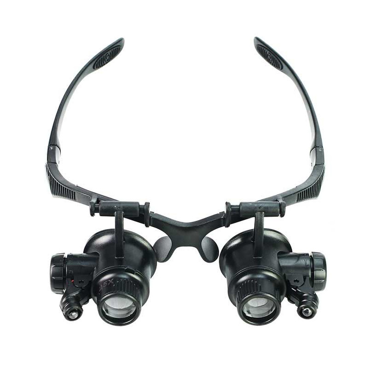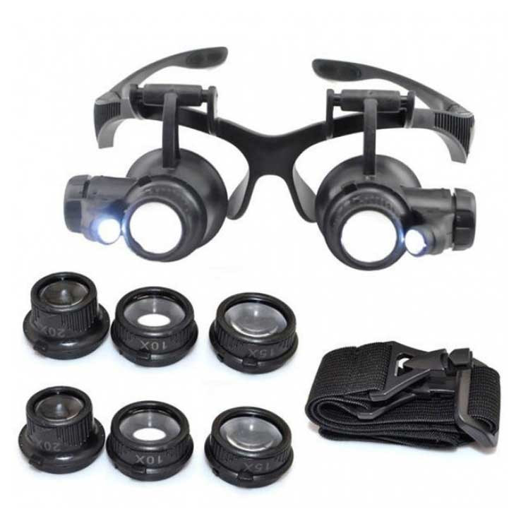 ذره بین ساعت سازی مدل 9892G فریم عینکی است که به آسانی روی صورت قرار میگیرد. این ذره بین دارای 4 جفت عدسی با بزرگنمایی 10، 15 ، 20 و 25 برابر است . در دو طرف این کالا LED جهت تابش نور وجود دارد. همچنین میتوان به جای دسته عینکی از کش مخصوص داخل بسته دستگاه برای قرارگیری روی صورت استفاده کرد. با آزاد بودن دستها ، برای کارآیی و عملکرد بهتر در کارهای ریز و حساس قابل استفاده است. کار با ذره بین عینکی مدل 9892G نسبت به ذره بین های دستی بسیار راحت تر است خصوصا برای استفاده طولانی مدت که چشم ها به دلیل تغییرات مداوم فاصله ، بدلیل خستگی دست دچار مشکل میشوند. در صنایع و مشاغل ریز و دقت بالا مثل طراحی ساخت و تعمیر در طلا سازی و جواهر سازی ، الکترونیک، قالب ریزی و سازه ، مجسمه سازی، قالب سازی، کار با ماشین پرس ، محصولات دقیق مثل دوربین ها، مدار های الکترونیکی،تعمیرات کامپیوتر ، سیستم های الکترونیکی ، خودرو ، تلفن همراه و در استفاده عمومی همچون جمع آوری تمبر ، خواندن، نقاشی و… قابل استفاده می باشد. نور چراغ این عینک ال ای دی LED بوده و نور تیز ولی متمرکزی دارد یعنی پخش نشده و به این معنی است که شما می توانید آن را در حالی که دیگران در خواب هستند یا در حال تماشای تلویزیون استفاده کنید و یا برای انجام هر کاری که در آن اتاق نور کم باشد استفاده کنید. این مدل به دلیل فاصله کانونی بسیار نزدیک (حدود 1 الی 5 سانتیمتر) برای کارهای خاص و اهداف خیلی ریز مثل ساعت سازی مناسب میباشد، و نیاز به نزدیک بودن سوژه یا هدف به لنز را دارد بنابر این انتظار مشاهده اهداف در فاصله 10 یا 20 سانتیمتری با زوم های یاد شده نداشته باشید.