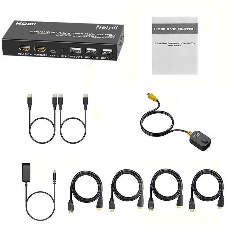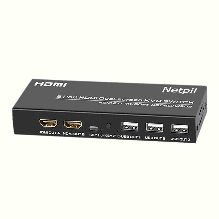 سویچ دو پورت HDMI KVM DUAL SCREEN نت پیل مدل HK202 به شما امکان می دهد 2 کامپیوتر را تنها با یک مجموعه کیبورد و ماوس کنترل کنید و 4 دستگاه USB و 2 مانیتور را به اشتراک بگذارید. این HDMI 2.0 Dual Monitor KVM Switch از حداکثر رزولوشن 4K@60Hz پشتیبانی می کند، همچنین با 4K@30Hz، 1080P@60Hz سازگار است. و از YUV 4:4:4، HDR، Dolby Vision، HDCP 2.2، HDMI 2.0، EDID پشتیبانی کنید.توجه داشته باشید اگر به وضوح 4K نیاز دارید، لطفاً از کابل HDMI نسخه 2.0 استفاده کنید و مطمئن شوید که رایانه ها و مانیتورهای شما از 4K پشتیبانی می کنند. 2 مانیتور سوئیچر KVM از حالت توسعه یافته و حالت آینه/تکراری و همچنین حالت اتصال/محور پشتیبانی می کند. با یک کنترلر رومیزی این KVM SWITCH تنها 1 تا 2 ثانیه طول می کشد تا بین 2 کامپیوتر جابجا شوید بدون اینکه تاخیر داشته باشید. پشتیبانی از سیستم های Windows ، Mac OS، Linux، Dos. محتویات بسته 1 سوئیچ HDMI KVM دو مانیتور، 2 کابل USB یک کنترلر رومیزی، 1 آداپتور برق 1 راهنمای کاربر و 4 عدد کابل HDMI میباشد.
