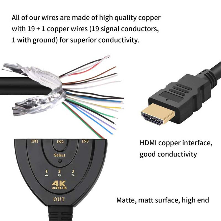 سویچ 3 پورت HDMI مدل NETPIL ULTRA 4K نسخه ارتقا یافته سوئیچ HDMI 4K دارای عملکرد تعویض دکمه سریع میباشد . و سه منبع را به راحتی به یک نمایشگر تغییر می دهد، سازگار با HD Audio و HDCP، بدون نیاز به قطع و وصل مداوم کابل بوده و HDMI Plug and Play میباشد. طول کابل 50 سانتی متر (19.7 اینچ) میباشد. پشتیبانی شده از Microsoft XBOX ONE، Microsoft XBOX 360، Sony PlayStation 4، Sony PlayStation 3، با وضوح بالا (HD) است ، شما میتوانید با استفاده از این سوییچ 3 پورت HDMI همزمان 3 دستگاه را به این دستگاه متصل کنید و سپس از طریق از طریق 1 کابل به تلویزیون متصل شوید و سپس میتوانید بین دستگاه های متصل شده سوییچ کنید و هر کدام را که نیاز دارید انتخاب نمایید . دستگاه فوق میتواند تصاویر را با کیفیت بسیار بالا 1920x1080P منتقل کند و در هنگام استفاده هیچگونه افت کیفیتی نخواهید داشت .3 عدد دکمه بر روی دستگاه امکان جابجایی را به شما میدهد تا در هر زمان تصویر مربوط به دستگاه مورد نظر را بر روی مانیتور و تلویزیون تماشا کنید.طول کابل این سوییچ که از جنس PVC با کیفیت است 50 سانتیمتر میباشد.