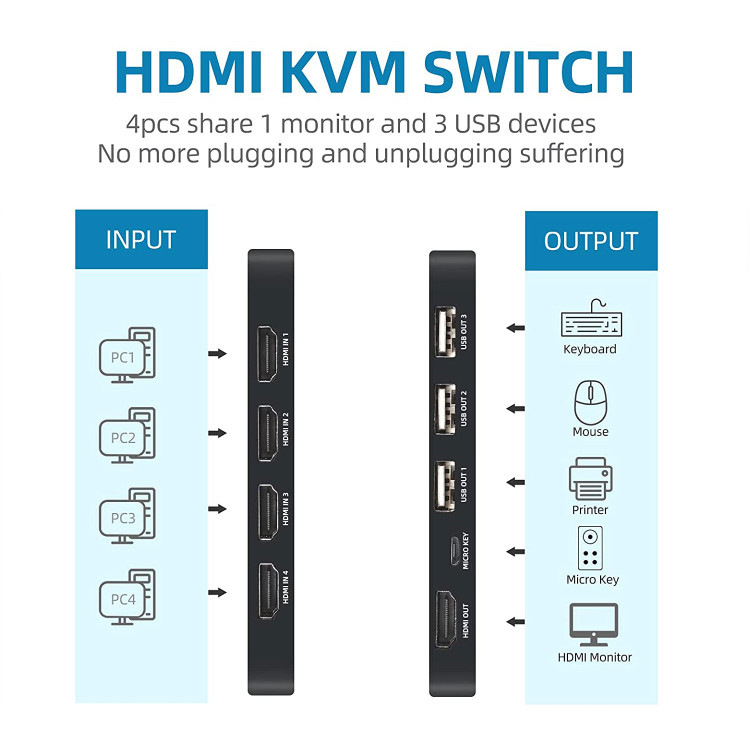 سویچ چهارپورت HDMI KVM نت پیل مدل HK401 میتواند یک مانیتور HD 4K را با سه دستگاه کیبورد و ماوس و اسکنر بین چهار عدد کامپیوتر به اشترک بگذارد . براحتی با کلید های تعبیه شده بروی دستگاه یا کلید های روی ریموت کنترل بین 4 عدد کامپیوتر جا به جا شوید. بدون نیاز به درایور بروی انواع سیستم های حامل از فبیل DOS، Windows، Netware، Unix، Linux، Vista، Mac OS میباشد . مناسب برای استفاده در دفاتر کسب و. کار ، مرکز آموزشی ، دانشگاه ها ، مدارس ، جلسات ، اتاق های دبازی ، اتاق های کنفرانس میباشد.