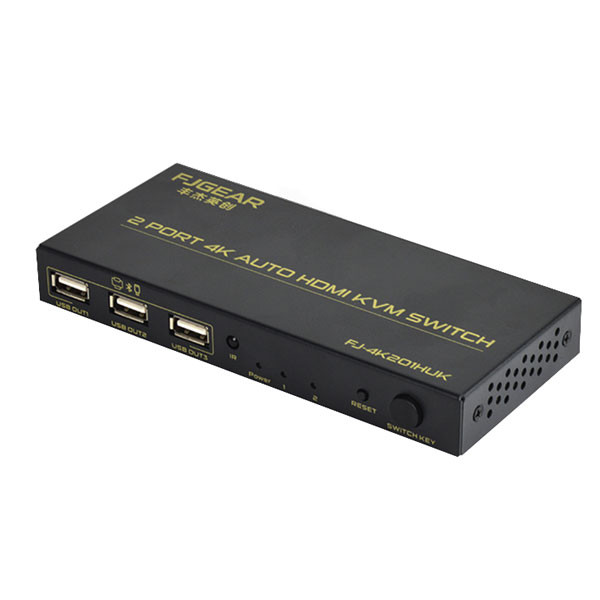 سویچ KVM دو پورت HDMI مدل FJ-4K201HUK دارای پورت USB به جای PS2 و همچنین دارای پورت HDMI به جای VGA میباشد.این سویچ به تکنسین کامپیوتر این امکان را میدهد که در آن واحد توسط یک شبکه معمولی و یک نرم افزار چندین کامپیوتر را کنترل کند . وقتی نمیخواهید تعداد زیادی سیم برای کامپیوتر خود بکشید این روش جایگزین خوبی است . اگر از سویچ کی وی ام و نرم افزار به صورت همزمان استفاده میکنید میتوانید تعداد بیشتری از کامپیوتر را کنترل کنید همینطور نرم افزارهایی هستند که به کمک آن میتوانید از طریق خط تلفن در آن واحد ب یا اینترنت به کامپیوتر ها دسترسی پیدا کنید این تجهیز وقتی میخواهید چند کامپیوتر را از طریق راه دور مدیریت کنید بسیار کارآمد میباشد. توسط یک سویچ کی وی ام به راحتی میتوانید یک کیبورد و ماوس و مانیتور را در آن واحد به دو تا کامپیوتر و مانیتور و کی وی ام به هم وصل میکند.