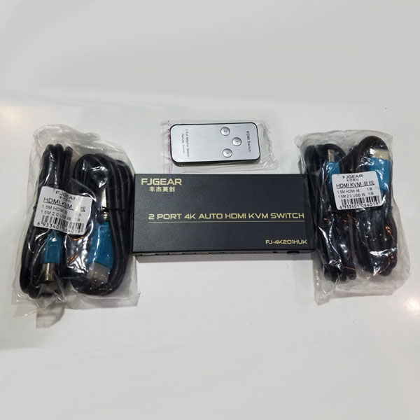 سویچ KVM دو پورت HDMI مدل FJ-4K201HUK دارای پورت USB به جای PS2 و همچنین دارای پورت HDMI به جای VGA میباشد.این سویچ به تکنسین کامپیوتر این امکان را میدهد که در آن واحد توسط یک شبکه معمولی و یک نرم افزار چندین کامپیوتر را کنترل کند . وقتی نمیخواهید تعداد زیادی سیم برای کامپیوتر خود بکشید این روش جایگزین خوبی است . اگر از سویچ کی وی ام و نرم افزار به صورت همزمان استفاده میکنید میتوانید تعداد بیشتری از کامپیوتر را کنترل کنید همینطور نرم افزارهایی هستند که به کمک آن میتوانید از طریق خط تلفن در آن واحد ب یا اینترنت به کامپیوتر ها دسترسی پیدا کنید این تجهیز وقتی میخواهید چند کامپیوتر را از طریق راه دور مدیریت کنید بسیار کارآمد میباشد. توسط یک سویچ کی وی ام به راحتی میتوانید یک کیبورد و ماوس و مانیتور را در آن واحد به دو تا کامپیوتر و مانیتور و کی وی ام به هم وصل میکند.