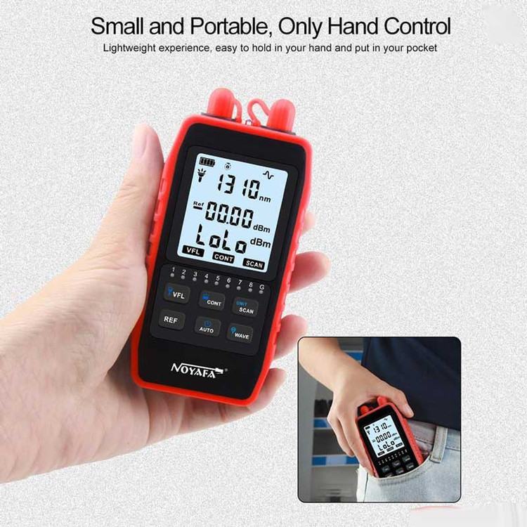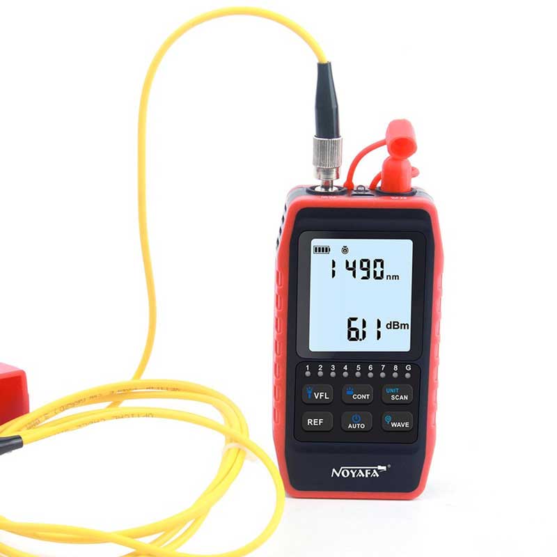 تستر کابل شبکه مدل NETPIL NF 908S با قابلیت اندازه گیری توان نوری می تواند 6 طول موج استاندارد 850/980/1310/1490/1550/1625 نانومتر را اندازه گیری کند، محدوده اندازه گیری از -60 تا +8dBm و از توان سنج نوری رابط های جهانی FC، ST و SC پشتیبانی می کند. با یک منبع نور قوی، به راحتی می توان به فیبر نوری در مسافت های طولانی نفوذ کرد.اسکنر سیگنال دیجیتال ارتقا یافته NF-908S می تواند به شما کمک کند تا کابل LAN مناسب را در میان کابل ها پیدا کنید. تست تداوم کابل هنگامی که پورت RJ45 وارد می شود، امیتر و ریموت به طور خودکار تداوم کابل شبکه را تجزیه و تحلیل کرده و وضعیت را با یک نشانگر LED نشان می دهند. با طراحی یک تکه قابل جدا شدن، تستر نور فیبر را می توان به صورت انعطاف پذیر و آسان استفاده کرد. و صرفه جویی در انرژی که پس از 30 دقیقه، هیچ عملیاتی به طور خودکار خاموش نمی شود. سیستم روشنایی LED کمک میکند که در محل های تاریک براحتی با آن کار بکنید. اندازه جمع و جور با رابط کاربری ساده و دکمه عملکرد، آسان برای استفاده و با یک تستر کابل داخلی RJ45 که قابل جدا شدن است و استفاده از آن را راحت می کند. تستر کابل RJ45 می تواند به طور خودکار اسکن و بررسی کند که آیا ترتیب کابل شبکه درست است یا خیر. مجهز به باتری 700 میلی آمپر ساعتی برای کار طولانی و نور LED برای روشنایی در تاریکی. با عملکرد ردیابی کابل ، عملکرد تست تداوم کابل، بررسی شکستگی فیبر، سیم پیچی و غیره.