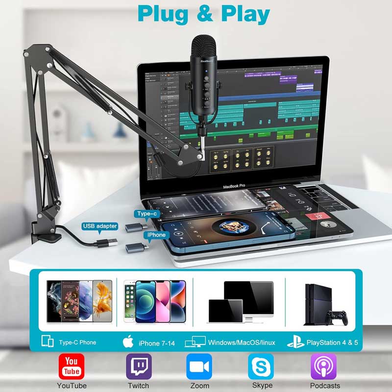 میکروفون ZEALSOUND K66 خازنی با ویندوز، macOS، لینوکس و اندروید سازگار بوده و ایده آل برای بازی، جلسات زوم، پخش جریانی، چت اسکایپ، کنفرانس آنلاین، پادکسترها، یوتیوبرها، ولاگرها، گیمرها و هنرمندان صدابردار در خانه میباشد
