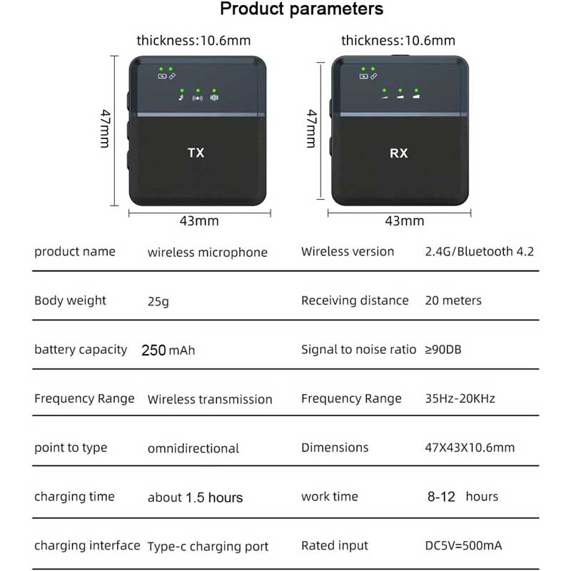 میکروفن بیسیم مدل NETPIL SX9 نه تنها میتواند از یک میکروفون استفاده کند، بلکه میتواند همزمان از دو منبع در جریان مستقیم استفاده کند. سازگاری گسترده با چندین دستگاه: iPhone و USB C و PC و دوربین بدون بلوتوث / برنامه، وصل و پخش. فقط گیرنده RX و فرستنده TX را بگذارید، دو ثانیه فشار دهید تا روشن شود، می توانید جفت شدن را کامل کنید.