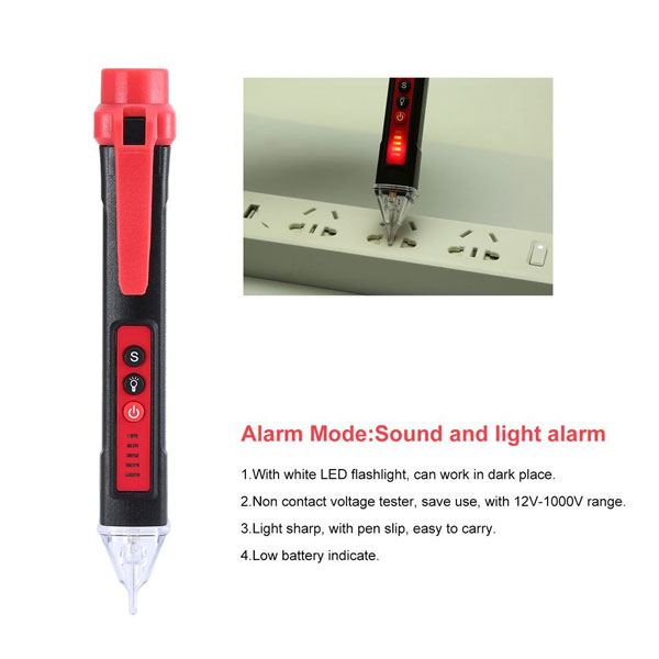 ولت تستر مدل ST-100 مشخصات فیزیکی ابعاد 150*30*20 میلیمتر وزن 48 گرم مشخصات فنی دامنه ولتاژ AC 12-1000V تداوم قابل شنیدن بله نمایشگر ال ای دیمنبع تغذیه باتری نوع باتری AAA سایر مشخصات هشدار صوتی و هشدار ال ای دی اقلام همراه دو عدد باتری آشکار ساز ولتاژ AC: سبک جدید نشانگر نمایشگر LCD سطح 4 ولتاژ را نشان می دهد (چراغ سبز به عنوان ولتاژ کم در جایی که دیگر نور قرمز نشان دهنده ولتاژ بالایی است که می تواند برای بدن خطرناک باشد) ، همراه با صدای بوق صدا ردیاب ولتاژ غیر تماسی when هنگامی که دستگاه به ولتاژ AC بیشتر در محدوده ولتاژ مشخص شده بدون لمس شیء اندازه گیری شده باشد ، چشمک می زند و بوق می زند ، و همچنین با صدای بوق و LED می تواند به اندازه کافی پشتیبانی کند . برنامه اندازه گیری ایمنی Safely Sound & Alarm Alarm – فرکانس ولتاژ را می توان با نشانگر بوق و چراغ متمایز کرد . به اندازه کافی بلند است که نویز تجهیزات تجهیزات متوسط را می شنوید. اندازه کوچک ، آسان برای ذخیره در جعبه ابزار یا حمل در جیب شما محتوای بسته بندی: 1 x قلم تستر ولتاژ غیر تماسی ; 2 x 1.5V باتری های AAA ; 1 x دفترچه راهنما انگلیسی 24 ماه ضمانت؛ برای روشن کردن قلم برقی ، لطفاً منبع تغذیه را حدود 3 ثانیه نگه دارید و آن را شل نکنید.