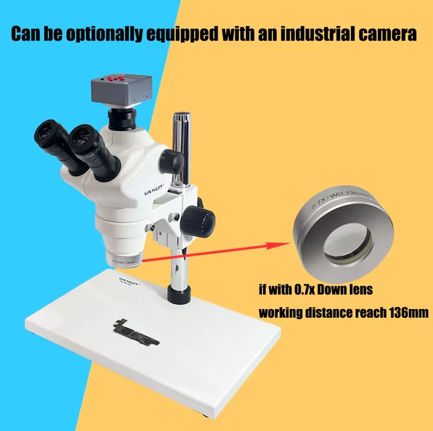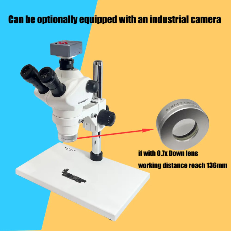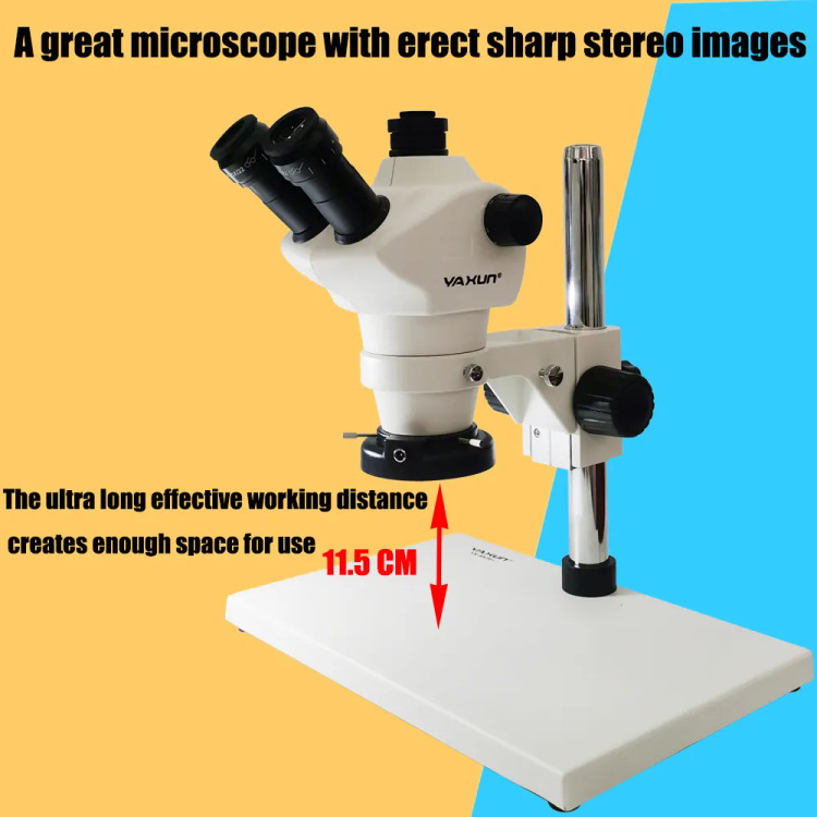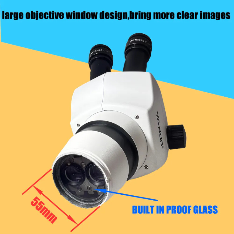 - فاصله کاری 115 میلیمتر این میکروسکوپ، فضای کافی برای کار با ابزارهای مختلف را فراهم میکند و چشمیهای WF10X/22mm با میدان دید وسیع و طراحی ارگونومیک، راحتی کاربر را تضمین میکنند. نورپردازی LED قابل تنظیم این میکروسکوپ، با 56 LED، نور بدون سایه و متمرکز را فراهم میکند که برای مشاهده دقیق و واضح بسیار مهم است.