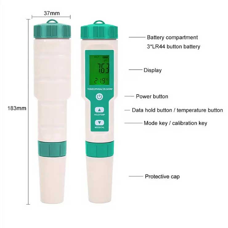 یک تستر کیفیت آب چند منظوره است که می تواند شوری آب PH TDS EC و ORP را آزمایش کند،