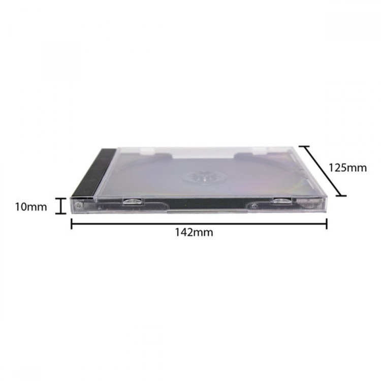 قاب سی دی و دی وی دی پهن کف مشکی که با استفاده از قاب می توانید عمر CD و DVD خود را بیشتر کنید و از خش خوردن آن ها جلو گیری کنید.می توانید بر روی قاب نام فایل داخل CD و DVD را یادداشت کنید تا در زمان نیاز به راحتی قابل دسترسی باشد. این قاب ها از ضربه خوردن به CD و DVD جلو گیری می کند. این محصول مناسب جهت آلبوم موسیقی و موارد دیگر می باشد.